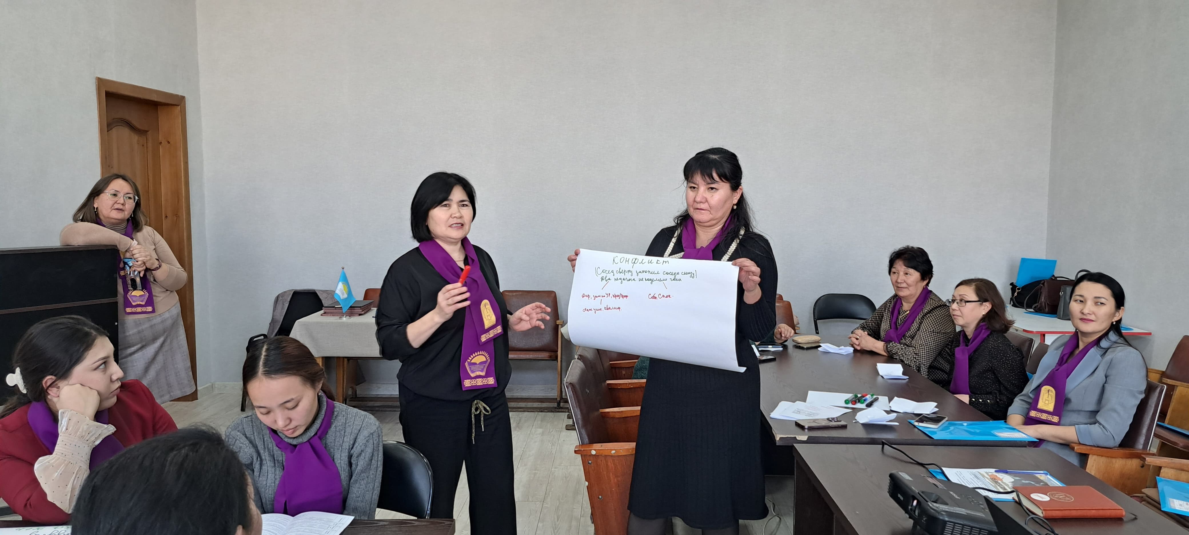 Аубакирова Г.С.- председатель комиссии по делам трудящихся женщин Аягозского района, педагог-психолог провела тренинг на тему: «Конфликты. Причины возникновения и способы его решения».