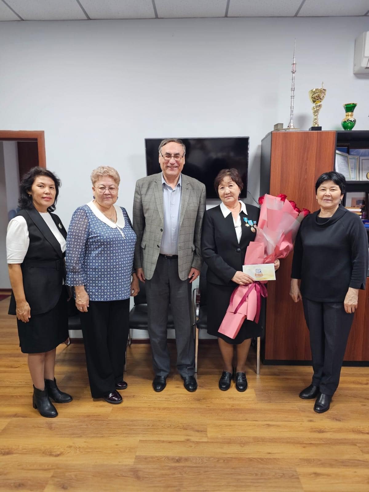 Сегодня 28 октября 2024 года председатель профсоюза «Устаз» С.Байгуттинов поздравил Г.Нурпейсову с получением высокой государственной награды и вручил подарки Отраслевого профсоюза.